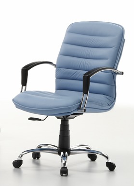 Poltrona disponibile con schienale alto o basso, base a 5 razze cromata, braccioli con struttura in acciaio cromato con inserto in poliuretano oppure cromati con pad rivestito, realizzabile anche nella versione con base e braccioli in legno verniciato color ciliegio o wengé. Disponibile con i seguenti meccanismi: alzata a gas; alzata a gas e movimento oscillante; alzata a gas e movimento disassato.